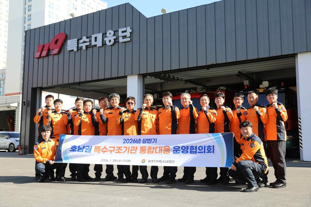 [국회의정저널] 광주광역시 119특수대응단은 28일 대응단 작전실에서 ‘2026년 상반기 호남권 특수구조기관 통합대응 운영협의회’를 개최했다.