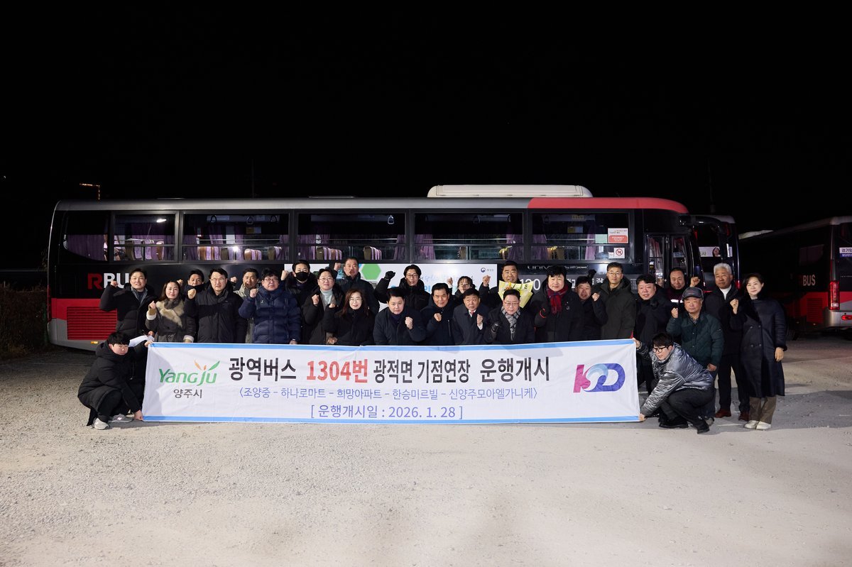 이날 개통식은 광적면까지 연장된 1304번 광역버스의 운행 개시를 기념하기 위해 마련된 행사로 이영주 의원을 비롯해 강수현 양주시장, 윤창철 양주시의회 의장, 한상민·강혜숙 시의원, 양주시 이은숙 도로교통국장·김지현 교통과장, 운수업체 관계자 등 약 30여명이 참석했다.