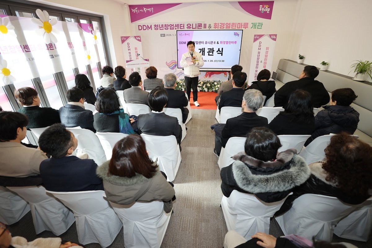 [국회의정저널] 서울 동대문구는 28일 청년 창업 지원과 주민 생활 문화 기능을 결합한 복합시설 'DDM 청년창업센터 유니콘Ⅱ·휘경열린마루'개관식을 열고 본격적인 운영에 들어갔다.