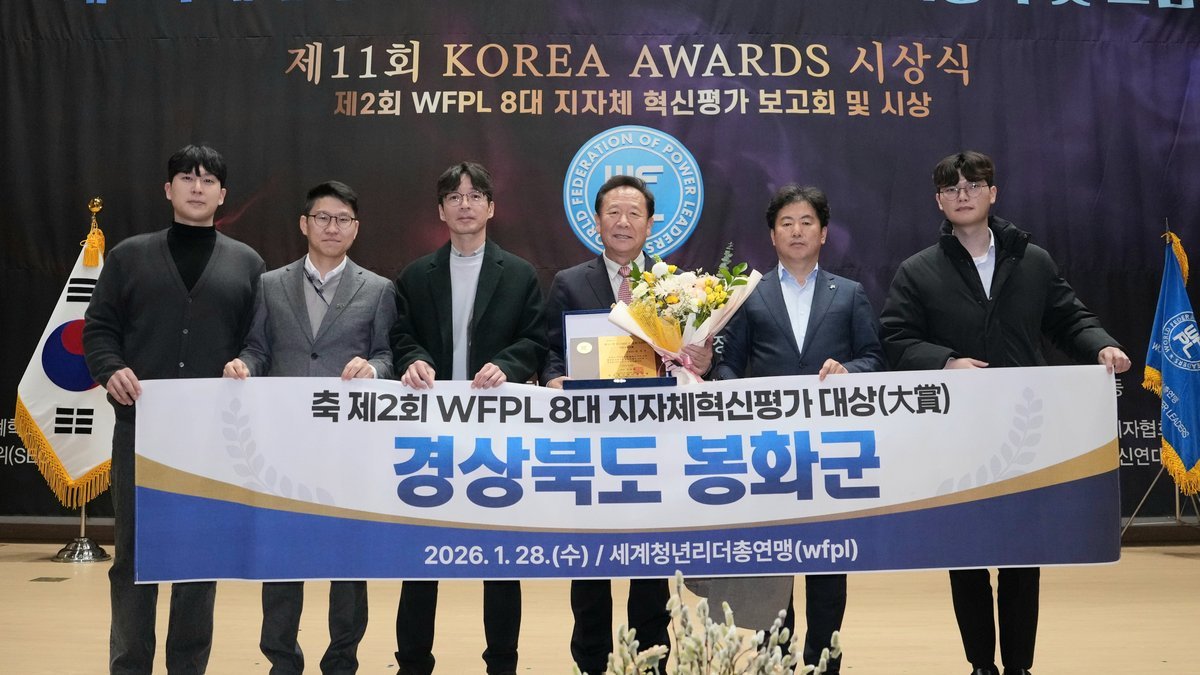 [국회의정저널] 봉화군이 세계청년리더총연맹 부설 지자체혁신평가위원회가 주관한 ‘제2회 WFPL 8대 지자체 혁신평가’에서 기관 부문 최고 영예인 ‘대상’을 수상했다.