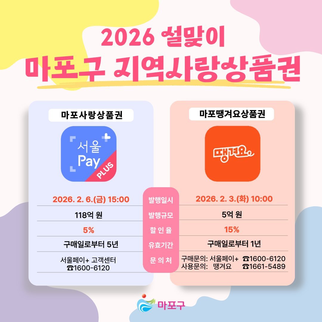 마포구, 마포사랑상품권·마포땡겨요상품권 총 123억원 발행 (마포구 제공)
