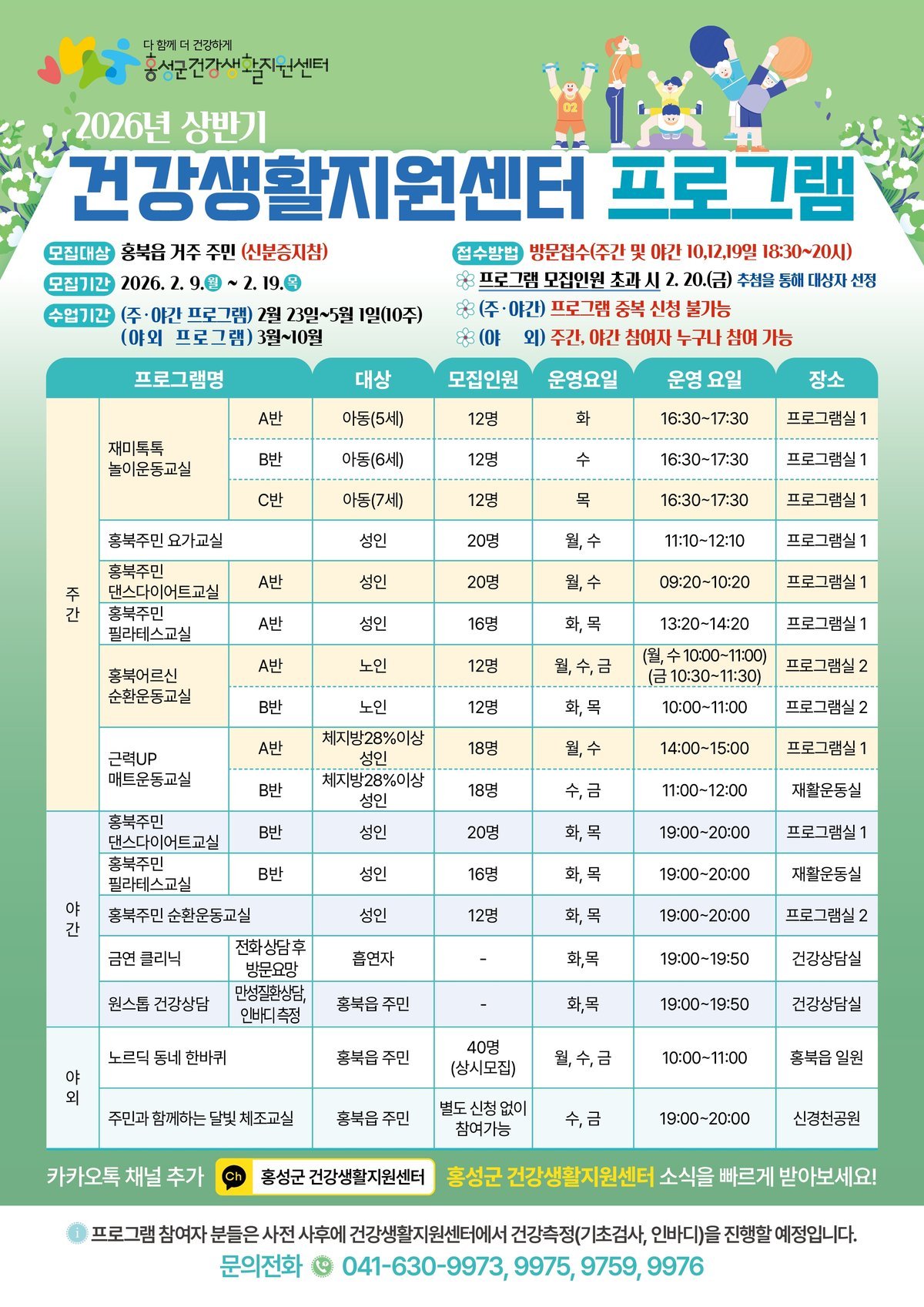 한편 프로그램 신청 관련 자세한 사항은 홍성군 건강생활지원팀으로 문의하면 안내받을 수 있으며 홍성군 ‘건강생활지원센터 카카오톡 채널’을 친구 추가하면 관련 정보를 제공받을 수 있다.