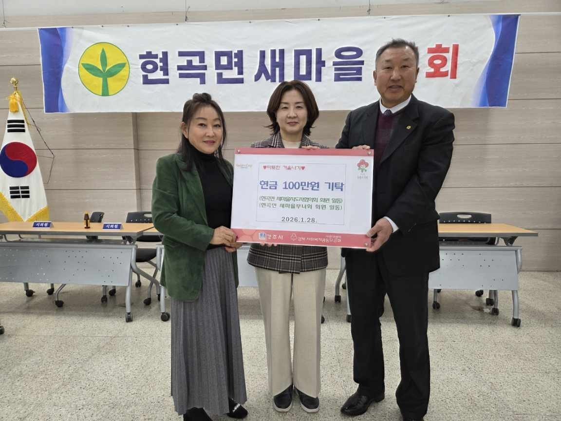 [국회의정저널] 현곡면 새마을지도자협의회 및 새마을부녀회는 1월28일 어려운 이웃들이 따뜻한 겨울을 보낼 수 있도록 불우이웃돕기 성금 100만원을 현곡면사무소에 전달하며 지역사회 나눔 문화 확산에 훈훈한 기운을 불어넣었다.