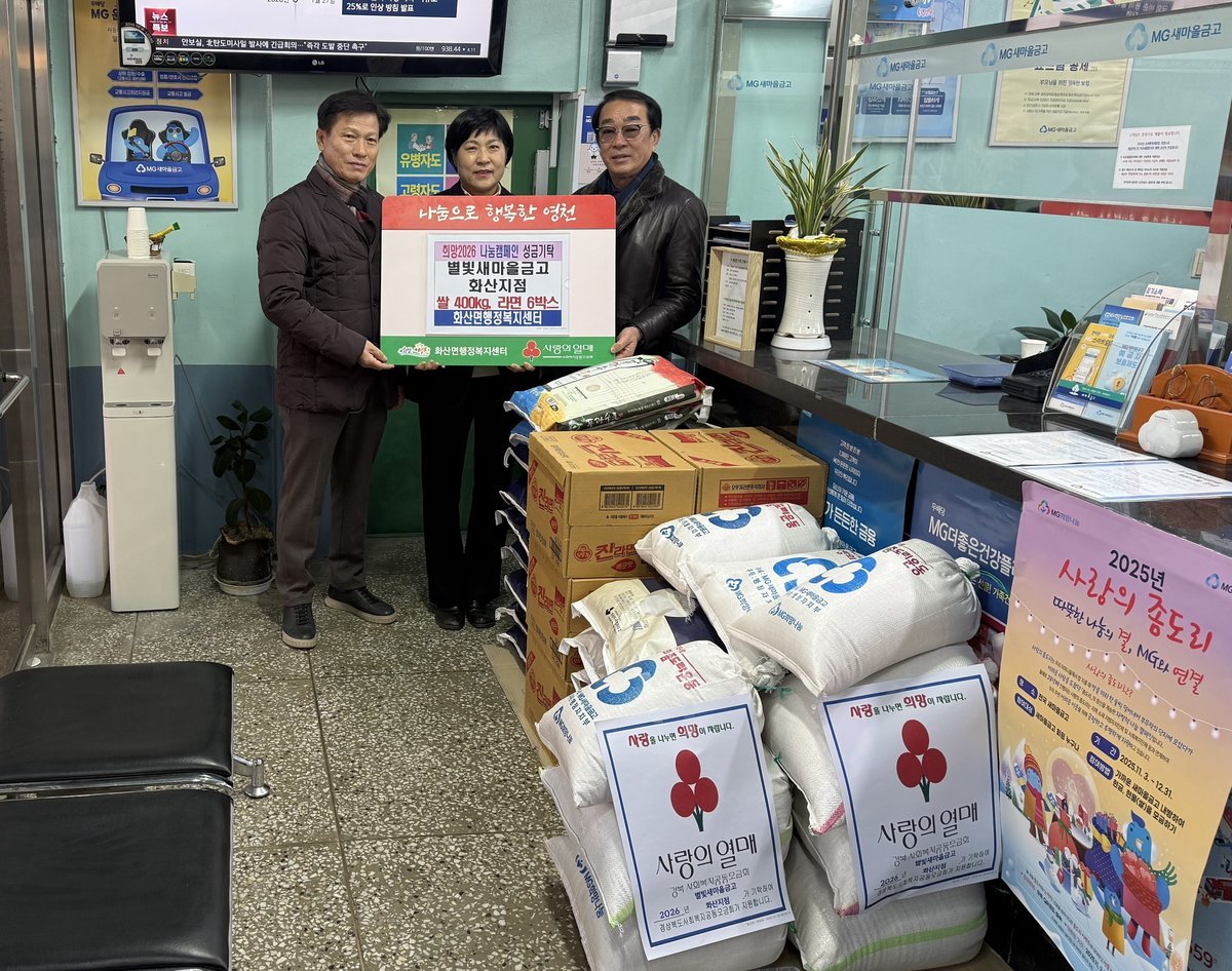 김선미 화산면장은 “매년 잊지 않고 이웃사랑을 실천해주시는 별빛새마을금고 화산지점에 깊이 감사드린다”며 “기탁해주신 소중한 물품은 도움이 필요한 이웃들에게 잘 전달하겠다”고 전했다.