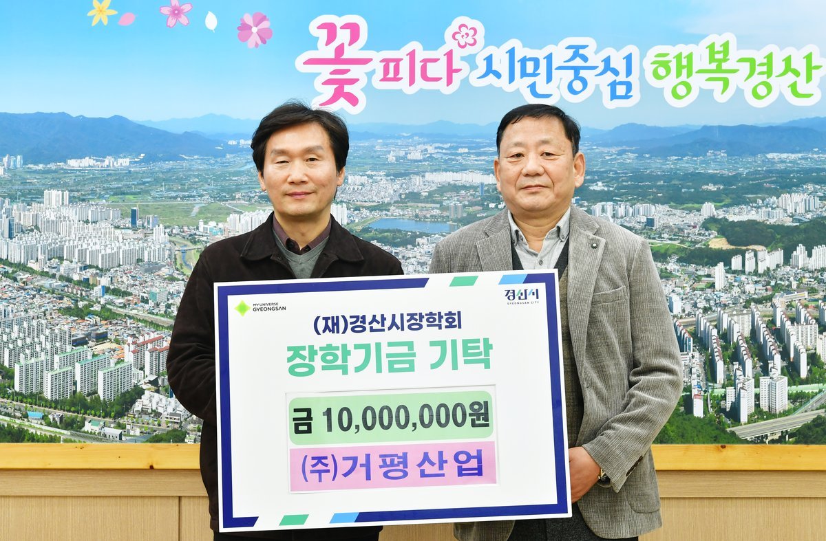[국회의정저널] 경산시장학회는 28일 ㈜거평산업이 지역 인재 육성을 위한 장학금 1000만원을 기탁했다고 밝혔다.