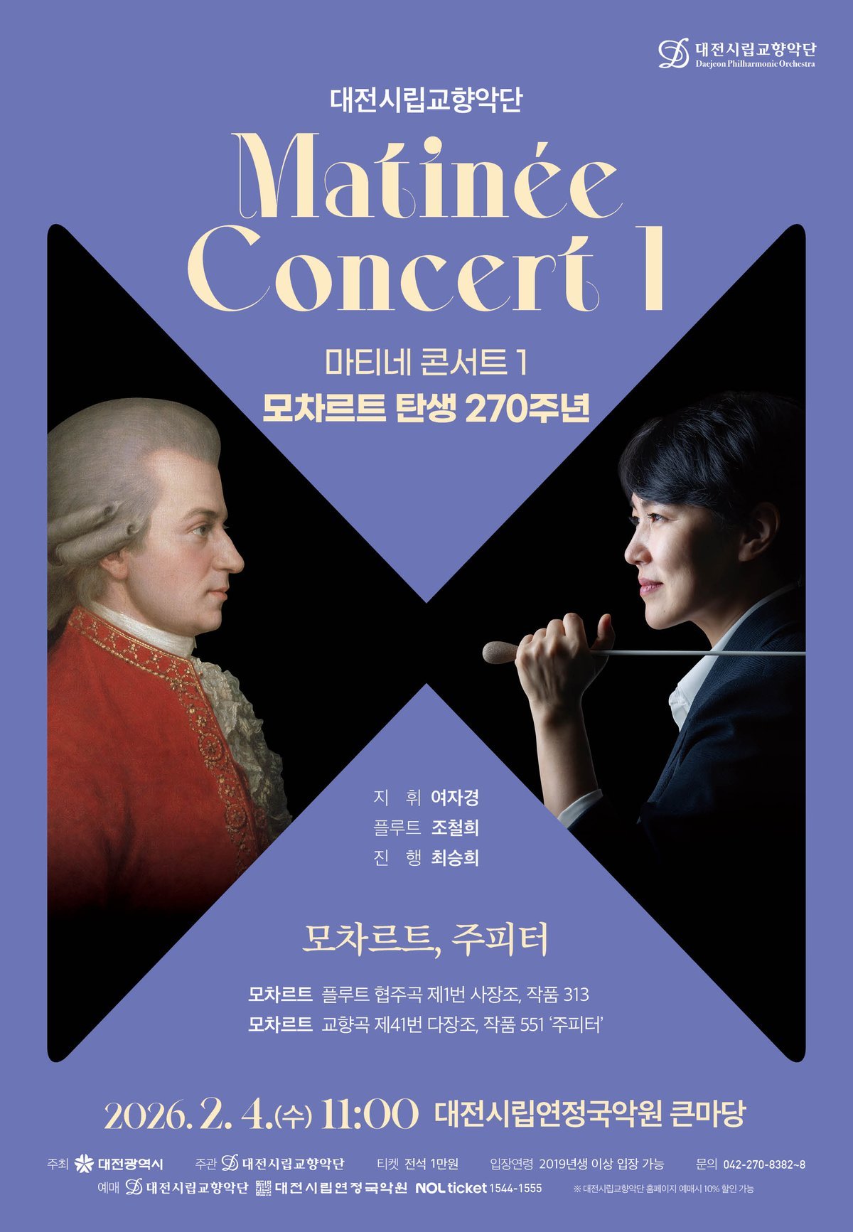[국회의정저널] 대전시립교향악단은 2월 4일 오전 11시, 대전시립연정국악원 큰마당에서 대표적인 기획 시리즈인 ‘마티네 콘서트’의 2026년 첫 무대를 연다.