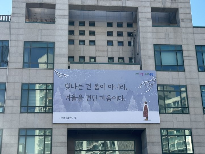 당선된 문안은 봄을 담은 디자인과 함께 3월부터 5월까지 중랑구청사 외벽에 게시된다.