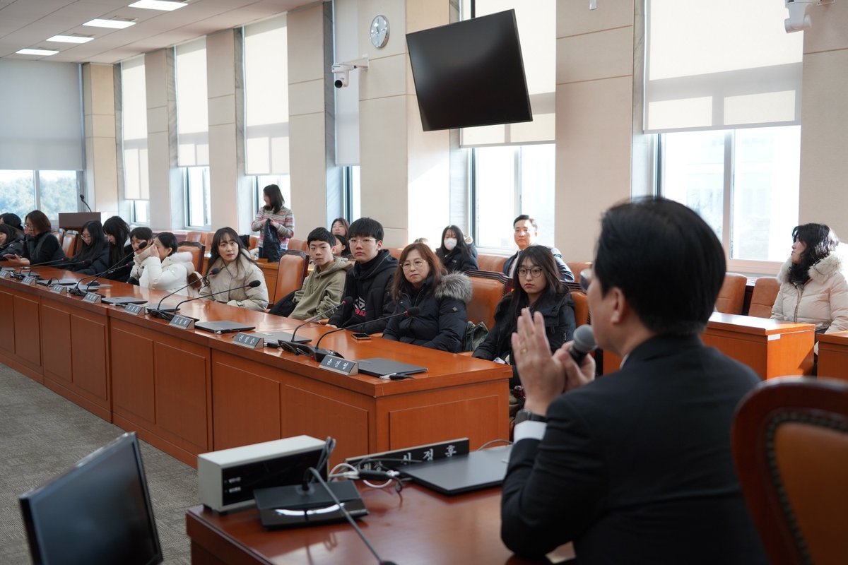 먼저 참가자들은 국회 본회의장에서 해설사의 안내를 받아 약 30분간 본회의장 운영과 국회 제도 전반을 참관하고 행정안전위원회 회의실에서 김성회 의원과 학생·학부모 간 질의응답 중심의 간담회를 진행했다.