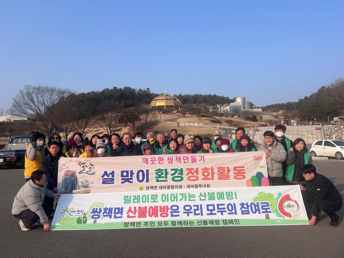 [국회의정저널] 합천군 쌍책면 새마을협의회·부녀회와 적십자회 회원들은 29일 설 명절을 앞두고 쾌적하고 깨끗한 마을환경 조성을 위해 회원 30여명이 참여한 가운데 관내 도로변 대청소와 산불 예방 홍보 캠페인을 실시했다.