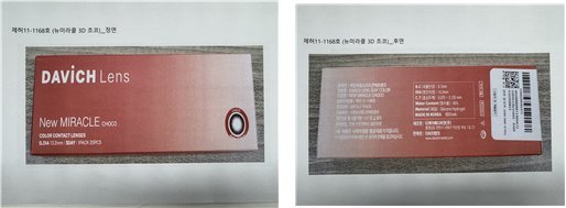 [국회의정저널] 식품의약품안전처는 의료기기제조업체인 ‘디케이메디비젼’에서 제조한 ‘DAVICH LENS 3DAY COLOR’ 등 매일착용소프트콘택트렌즈 중 아래 16개 모델에 대해 판매를 중단하고 회수 조치했다고 밝혔다.