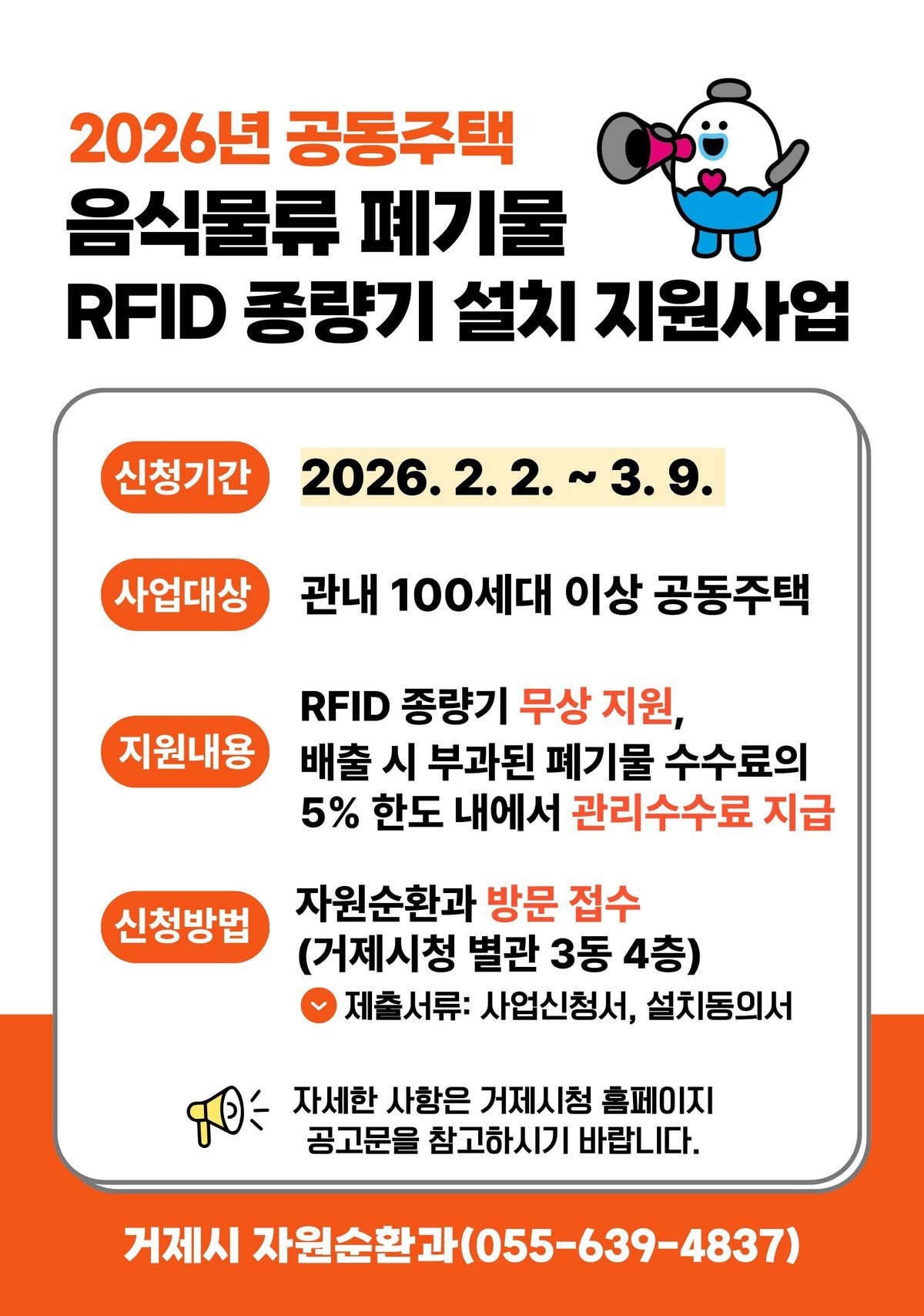 거제시, 2026년 공동주택 음식물류 폐기물 RFID 종량기 설치 지원사업 추진 (거제시 제공)