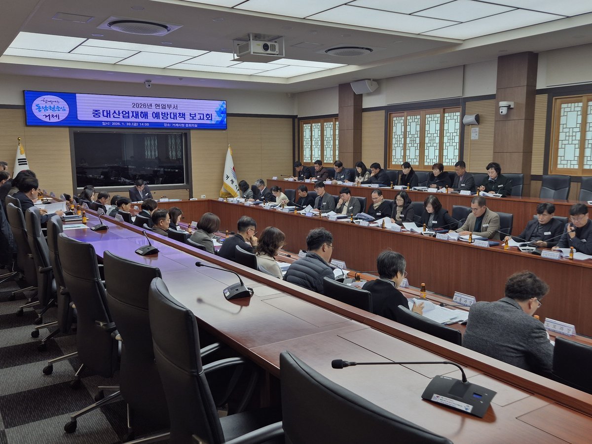 [국회의정저널] 거제시는 지난 30일 민기식 부시장 주재로 현업업무 부서장과 전 면·동장을 대상으로 '2026년 현업부서 중대산업재해 예방대책 보고회'를 개최하고 현장 중심의 산업재해 예방 강화를 위한 부서별 추진대책을 점검했다.