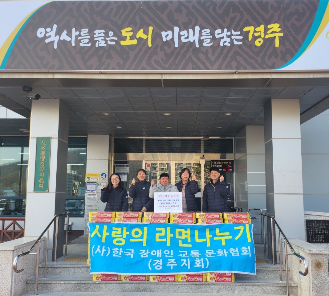 [국회의정저널] 사)한국장애인교통문화협회 경주시지회는 2026년 1월 29일 선도동행정복지센터를 방문해 관내 저소득 취약계층을 위해 컵라면 80박스를 기탁했다.