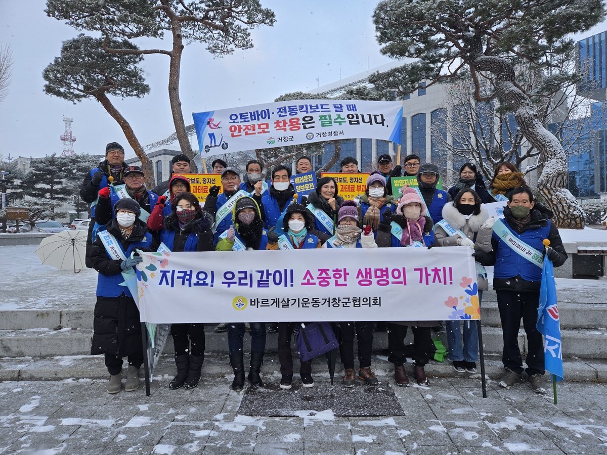 2026년 2월 민관합동 거창군 교통안전캠페인 시행 방향지시등 점등과 횡단보도 정지선 준수 홍보 (거창군 제공)