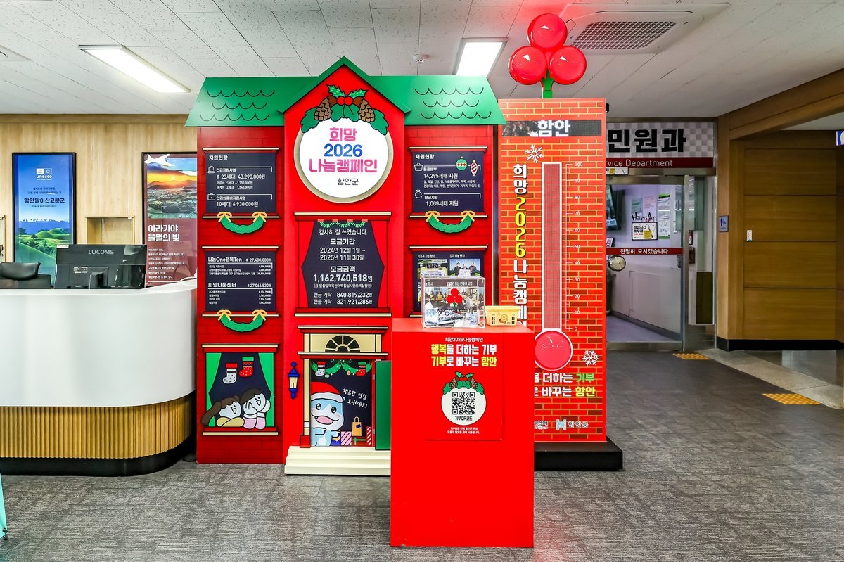 [국회의정저널] 함안군은 연말연시를 맞아 어려운 이웃을 돕기 위해 추진한 '희망 2026 나눔 캠페인'에서 목표액 18억 4752만원 대비 41억 6669만원을 모금해 목표 대비 225%를 달성하는 성과를 거뒀다고 2일 밝혔다.