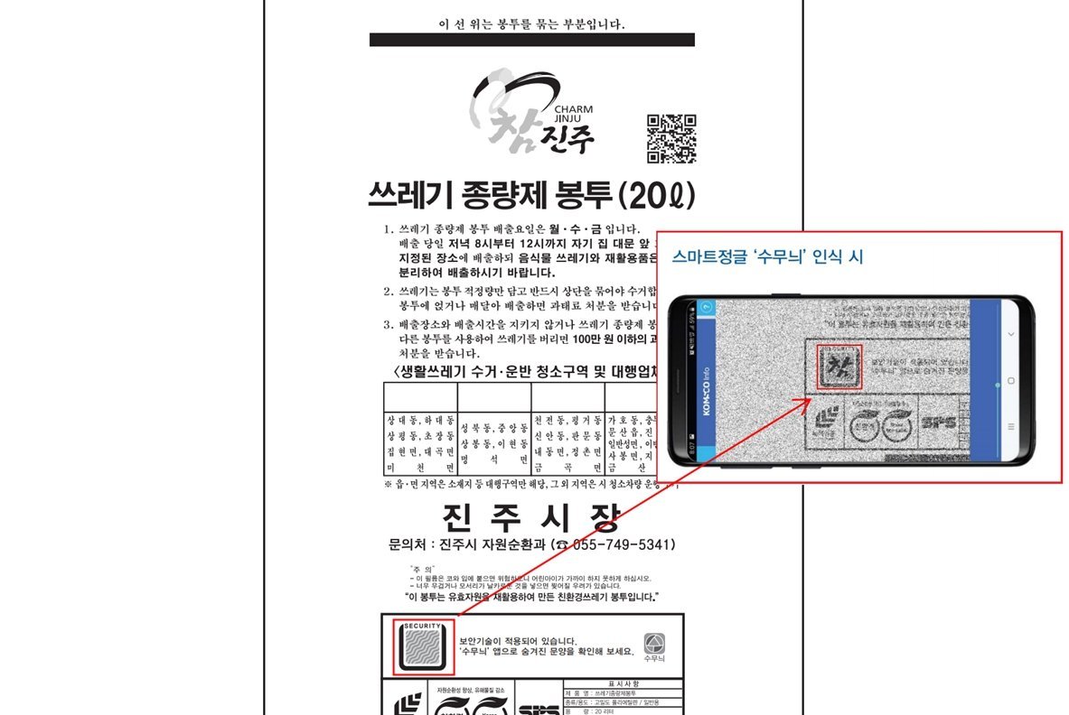 이에 따라 진주시는 한국조폐공사가 자체 개발한 위·변조 방지 기술인 ‘스마트 정글’을 종량제봉투에 도입한다.