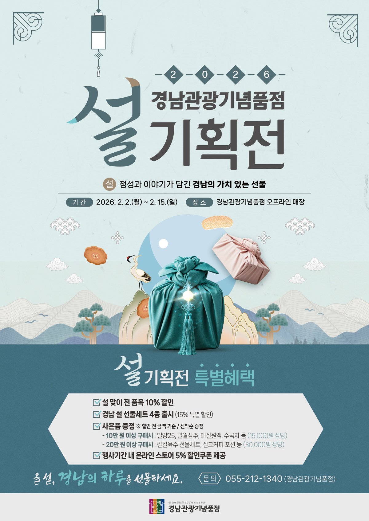 [국회의정저널] 경상남도는 설 명절을 맞아 경남관광재단 주관으로 ‘경남관광기념품점 설 기획전’을 오는 2월 2일부터 15일까지 운영한다고 밝혔다.