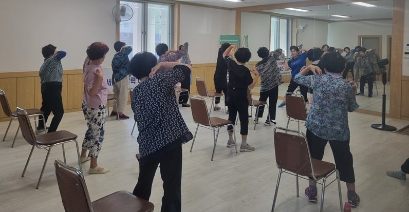 전문강사가 지도하는 신체활동 강좌는 △파워업 근력운동 △행복한 관절운동 △트롯 체조 △소도구 필라테스 △라인댄스 △실버요가 총 6개 과정이며 주민들의 기초 체력을 높이고 만성질환을 예방한다.