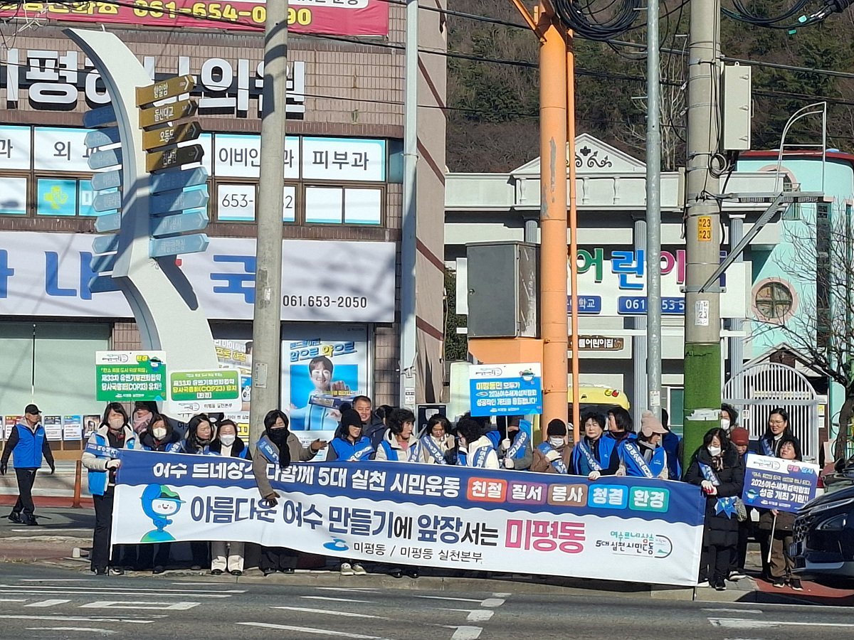 [국회의정저널] 여수 르네상스 미평동 실천본부는 지난 1월 28일 지역 주민들과 함께 2026여수세계섬박람회의 성공적인 개최를 기원하는 시민 캠페인을 실시했다.