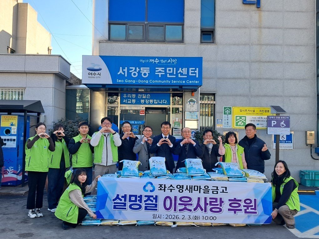 [국회의정저널] 서강동은 3일 여수 좌수영새마을금고에서 설 명절을 맞아 이웃사랑 실천을 위한 후원품 전달식을 가졌다고 밝혔다.