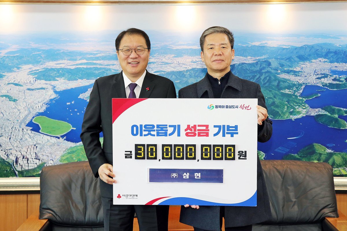 장금용 창원특례시장 권한대행은 "설 명절을 맞아 주변의 소외된 이웃을 위해 따뜻한 나눔을 실천해주신 ㈜삼현에 진심으로 감사드린다"며 "기탁된 성금이 꼭 필요한 곳에 잘 전달되도록 세심히 챙기고 나눔문화가 지역사회에 확산될 수 있도록 노력하겠다"고 전했다.