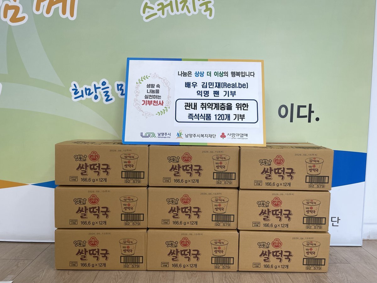 [국회의정저널] 남양주시는 지난달 30일 배우 김민재의 팬 A씨가 설 명절을 맞아 지역 내 도움이 필요한 이웃을 위해 즉석식품 120개를 기부했다고 3일 밝혔다.