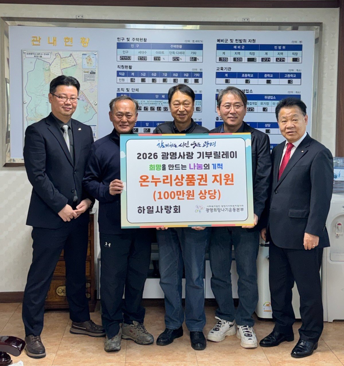 [국회의정저널] 광명시 하안1동 하일사랑회는 지난 2일 설 명절을 맞아 관내 저소득 20가구에 온누리상품권 100만원을 전달했다.