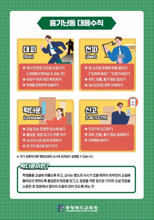 충북교육청, '돌발 위기상황 대응 체계'전국 학교 안전 표준 된다. (충청북도교육청 제공)