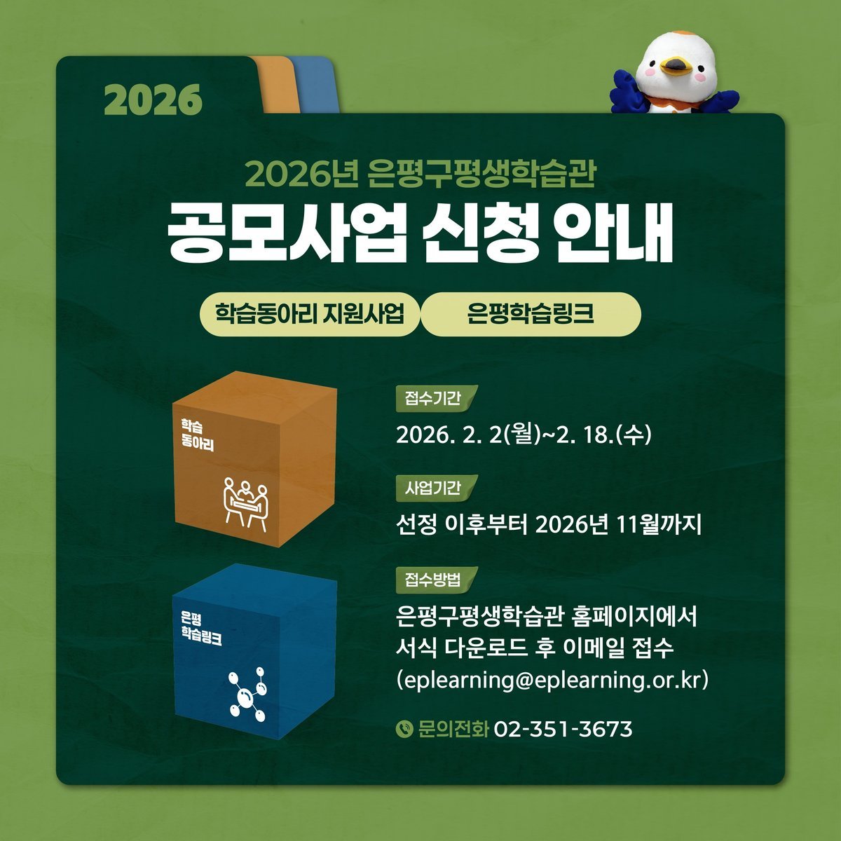 모집 분야는 은평학습링크와 학습동아리 지원사업 2개 분야다.