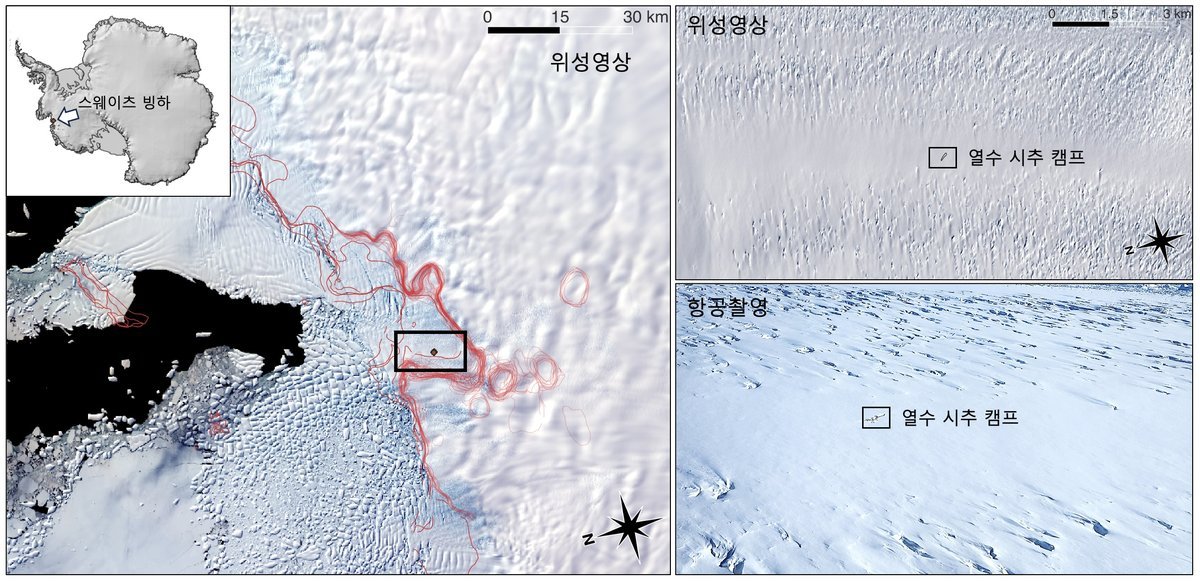 극지연구소 이원상 박사 연구팀은 이러한 한계를 극복하고자 아라온호와 헬기를 동원해 탐사를 시도했다. 경기도 면적의 스웨이츠 빙하 위에 축구장 2개 크기의 안전지대를 우선 확보했고, 아라온호에 헬기 운송용으로 개조한 25톤의 시추 장비를 싣고 인근 해역까지 접근한 뒤 다시 헬기를 이용해 안전지대로 시추 장비를 실어 날랐다.