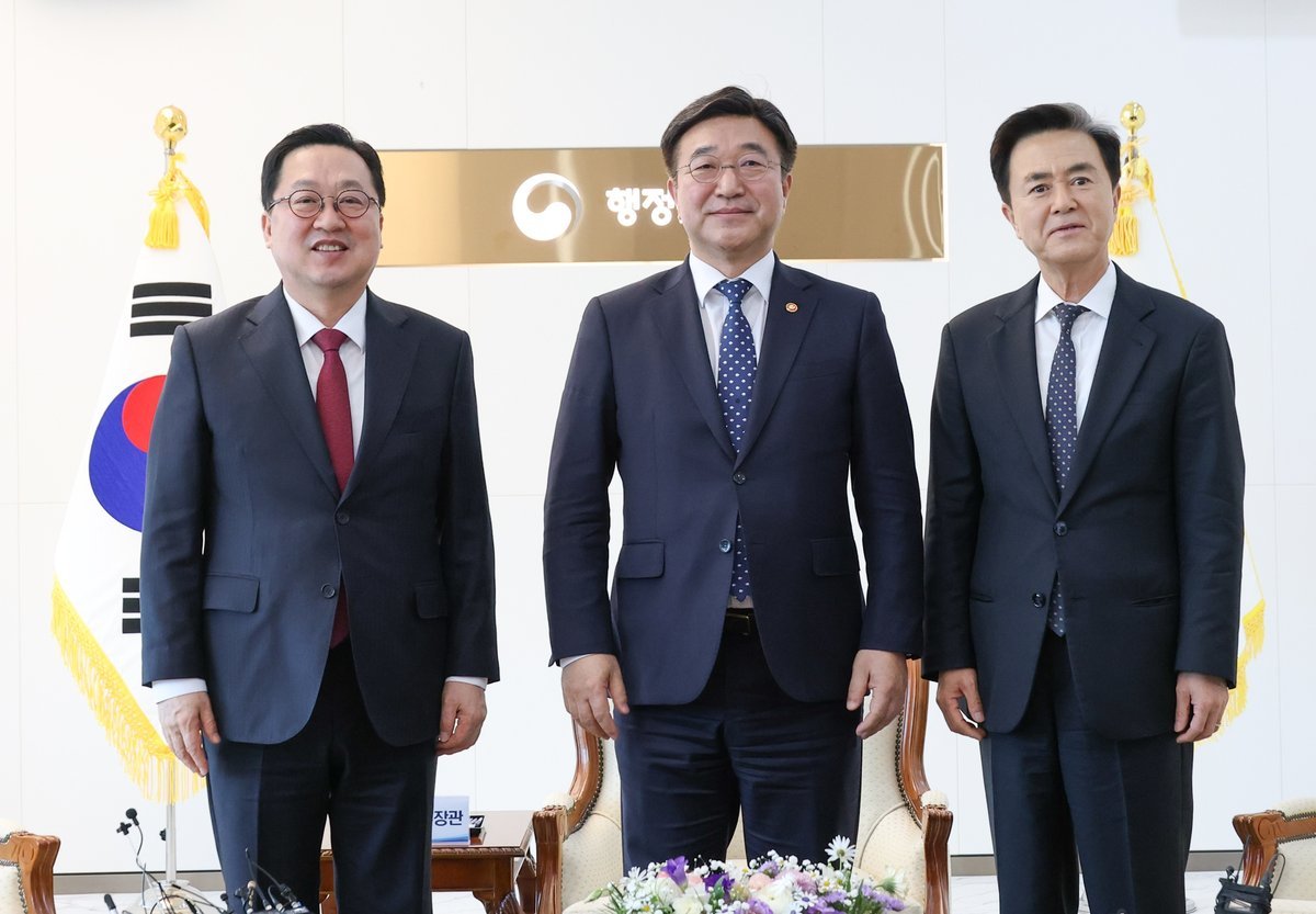 [국회의정저널] 이장우 대전시장은 6일 오후 4시 정부세종청사에서 윤호중 행안부 장관, 김태흠 충남지사와 간담회를 갖고, 대전․충남 행정통합 특별법의 원안 관철을 정부에 촉구하며 관련 건의문을 공식 전달했다.