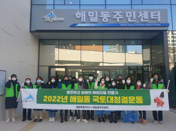 [국회의정저널] 세종특별자치시 해밀동이 지난 13일 해밀마을 1·2단지·상가 일원에서 ‘2022년도 새해 첫 국토대청결 운동’을 전개했다.