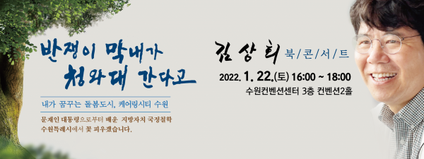 [국회의정저널] 오는 1월 22일 오후 3시부터 수원컨벤션센터 3층 컨벤션2홀에서김상회 전 청와대 행정관의 저서 ‘김상회 삶의 에세이 - ‘반쟁이 막내가 청와대 간다고’’ 출판기념회가 1월 22일 오후 3시부터 수원컨벤션센터 3층 컨벤션2홀에서 열린다.