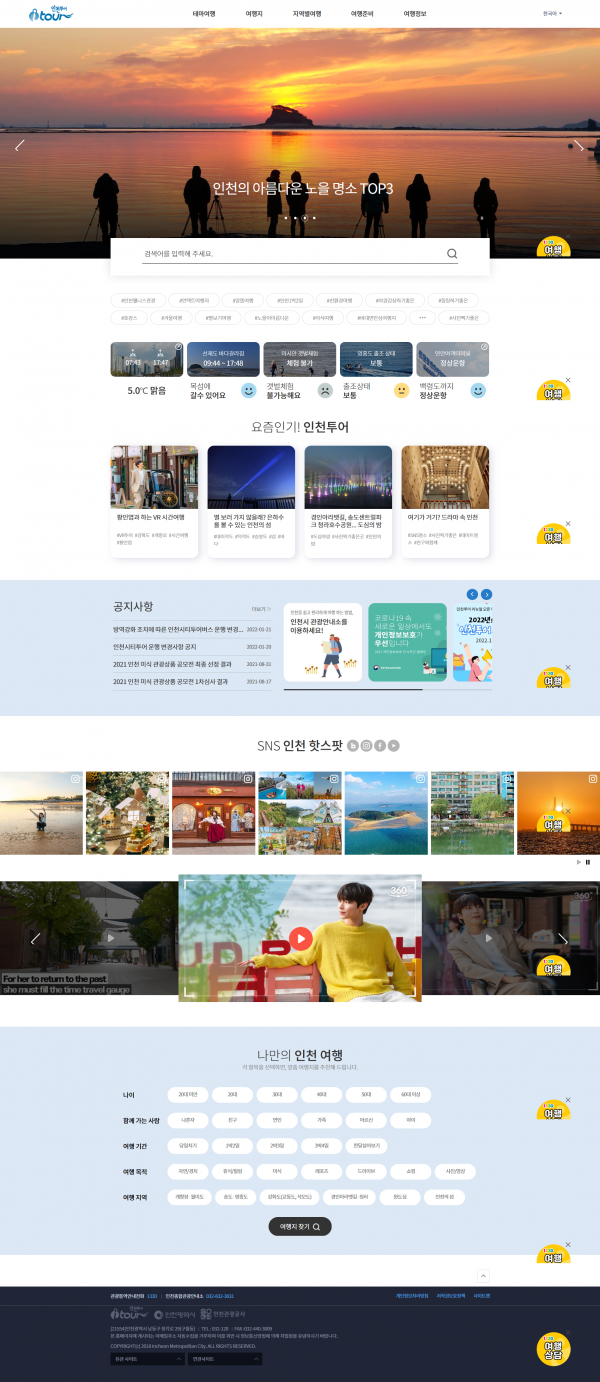 이번 웹사이트 전면 개편은 관광지, 음식점, 숙박, 쇼핑 등 여행지별 무장애관광을 포함한 최신화된 정보를 제공하며 관광 트렌드를 기반으로 인천 주요 관광지를 테마별로 소개하는 블로그형 관광기사 또한 살펴볼 수 있다.