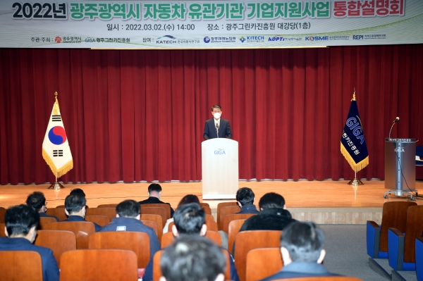 [국회의정저널] 광주광역시는 2일 광주그린카진흥원에서 ‘2022년 광주광역시 자동차 유관기관 기업지원사업 통합설명회’를 열고 자동차 부품기업을 대상으로 지원 사업을 안내했다.