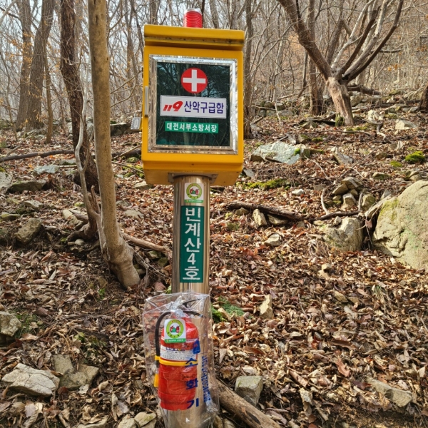 시민들이 많이 이용하는 등산로 눈에 띄는 119산악구급함 밑에 설치되어 산불 발생시 신속한 대응은 물론 산불조심 예방 및 경각심 제고 등 홍보 역할도 톡톡히 할 것으로 기대된다.