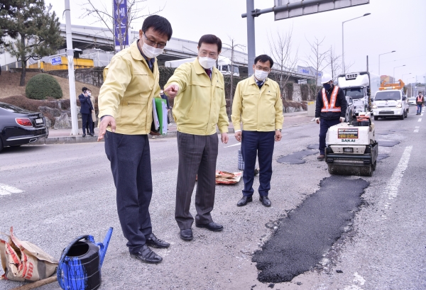 이 시장은 또 “이미 확보된 예산을 조기에 집행해 포트홀 긴급복구에 집중하고 3월 중 개최되는 시의회 임시회에서 추경 예산을 확보해 도로 재포장과 균열 최소화를 위한 최적의 포장 보수공법 마련 등 본질적 대책을 세우라”고 지시했다.