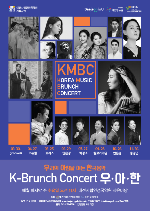 K-브런치콘서트 ‘우.아.한’은 대전국악방송과 공동으로 우리 지역 전통음악 인프라 확충과 국악의 대중화, 생활화를 위해 국내외에서 활발하게 활동하고 있는 연주자들과 함께 클래식, 재즈 등 다양한 장르와의 경계를 넘나드는 음악으로 국악 중심의 동시대 최고의 한국창작음악을 선사하는 프로그램이다.