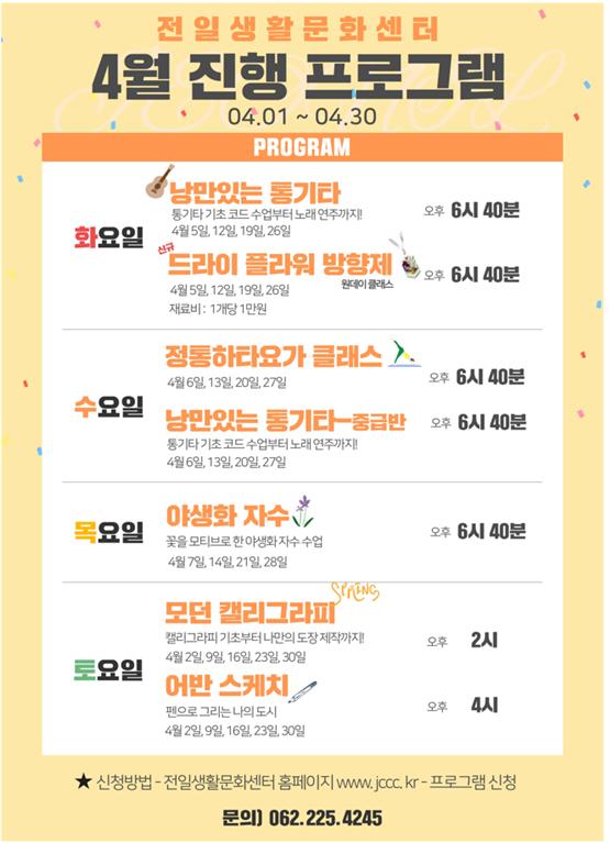 [국회의정저널] 광주광역시는 광주 대표 문화공간인 전일빌딩245 전일생활문화센터가 4월 원데이 클래스 ‘드라이플라워 방향제 만들기’ 프로그램 참가자를 모집한다고 29일 밝혔다.