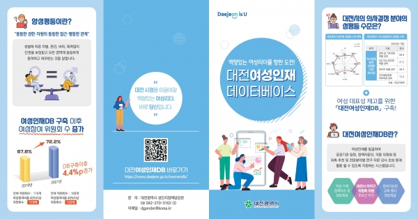 이에 대전시는 의사결정분야의 여성대표성을 높이기 위해 여성인재데이터베이스를 구축하고 시 산하 각종 위원회 등 구성 시 여성위원 후보자를 추천하는데 활용하고 있다.