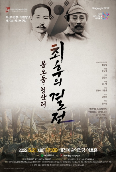 [국회의정저널] 대전시립청소년합창단 제79회 정기연주회 ‘봉오동 · 청산리 최후의 결전’이 오는 5월 21일 토요일 오후 5시 대전예술의전당 아트홀에서 개최된다.