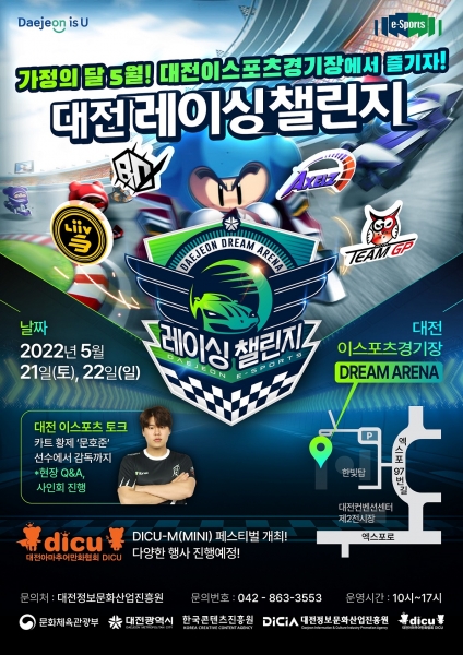 [국회의정저널] 대전시는 오는 5월 21일과 22일 양일간 대전 이스포츠경기장에서 카트라이더 프로팀 선수들이 참가하는 ‘대전 레이싱 챌린지’ 대회가 개최된다고 밝혔다.