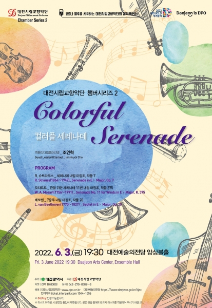 [국회의정저널] 대전시립교향악단은 오는 6월 3일 저녁 7시 30분, 대전예술의전당 앙상블홀에서 ‘챔버시리즈 2 컬러플 세레나데’를 연주한다.