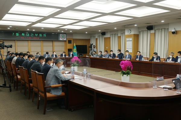 [국회의정저널] 이장우 대전광역시장은 5일 시청 대회의실에서 민선 8기 첫 확대간부회의를 열고 시민의 마지막 보루가 공직자임을 강조하고 일 잘하는 공직문화 조성을 주문했다.