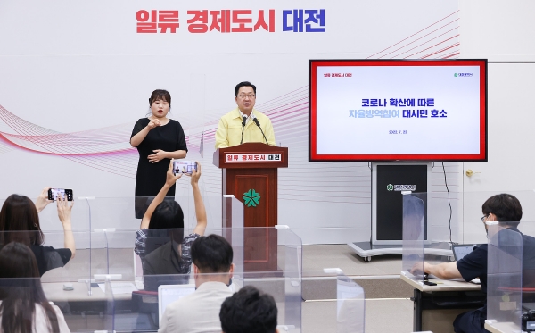 이날 이장우 시장은 “8월 말 예상되는 대유행의 시기에 방역당국의 방역 대응만으로 코로나19 확산을 막기에는 한계가 있다”며“시민들의 자율 참여가 코로나 위기를 극복할 수 있다”고 호소했다.