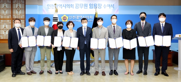 인천시의회는 5일 의장 접견실에서 정책지원관 채용시험에 최종 합격한 9명에 대한 임용장을 교부했다.