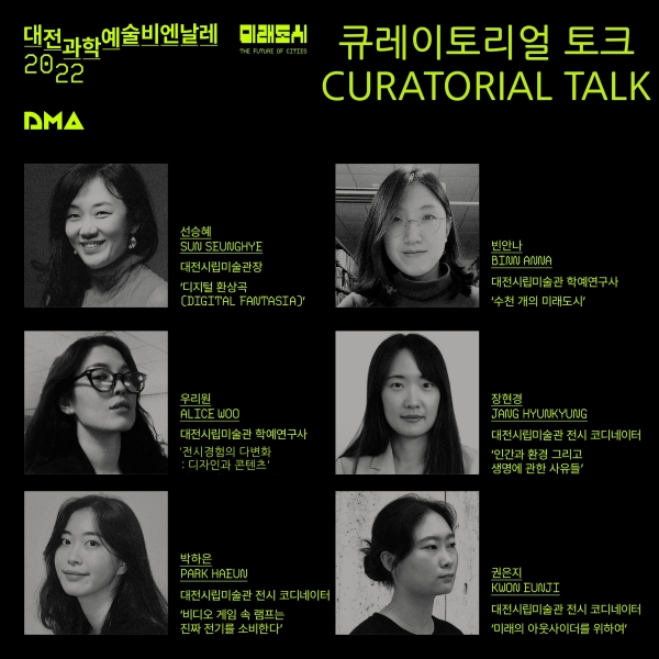 대담에는 선승혜 대전시립미술관장과 학예연구사, 전시 코디네이터 등이 함께했으며 대전과학예술비엔날레 2022 준비과정과 기획의도, 연계 프로그램 등을 생생하게 전달했다, 선승혜 대전시립미술관 관장은 “21세기 문화를 디지털세계의 환상과 자유로 정의하고 21세기형 미래도시는 디지털 인문학을 구축하고 초격차의 과학기술과 인간의 공진화로 자연, 인간, 과학기술이 뉴런과 같이 상호연결해 모두를 위한 예술로 더 나은 미래를 만들어 간다”고 새로운 미래도시를 상상했다.
