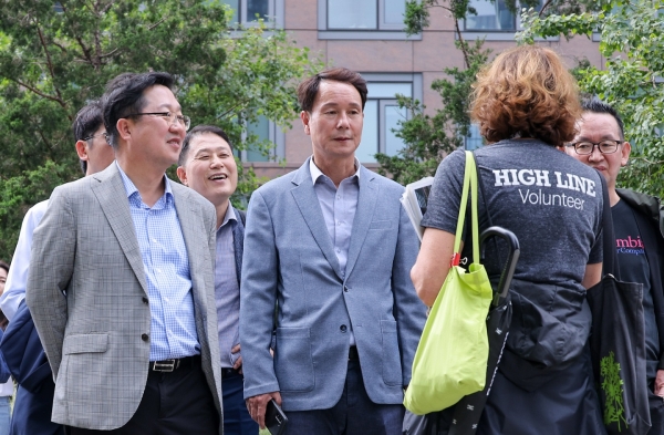 [국회의정저널] 미국과 유럽 출장길에 나선 이장우 대전시장은 22일 오전 폐철도 부지를 공원으로 조성해 세계적인 관광명소로 재탄생된 하이라인 파크 및 허드슨 야드 등 뉴욕시의 도시재생 우수사례를 시찰했다.