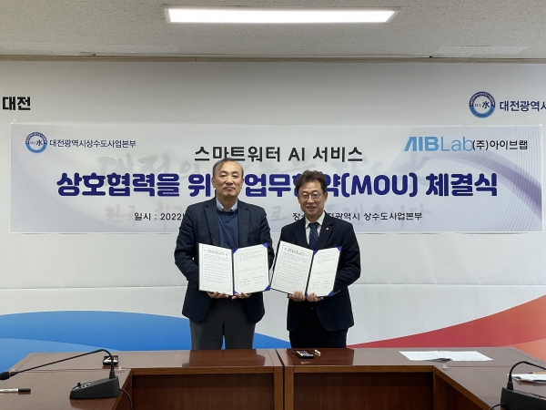 [국회의정저널] 대전시 상수도사업본부는 지난 12일 ㈜아이브랩과 업무협약을 체결하고 상수도 인공지능 시스템 구축을 위한 업무협약을 체결했다고 밝혔다.