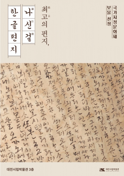 [국회의정저널] 대전시립박물관은 소장유물인‘나신걸 한글편지’의 보물 지정을 기념해 3월 24일부터 5월 28까지 박물관 3층 로비에서 박물관 속 작은 전시 ‘최고의 한글 편지’를 개최한다고 밝혔다.